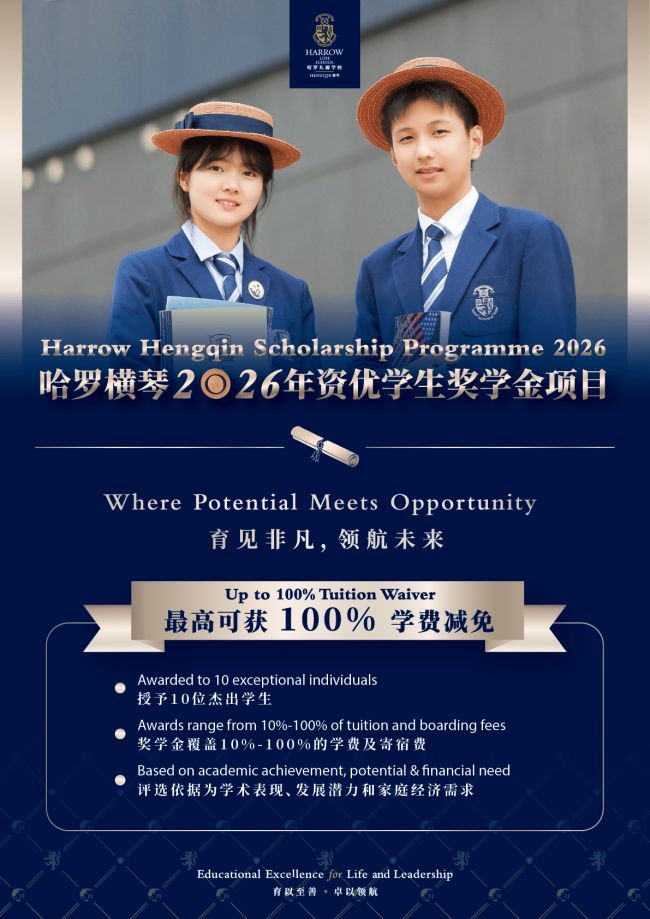 作为传承哈罗公学450余年教育精髓的国际化学校,哈罗横琴始终秉持“育以至善,卓以领航”的使命。本次资优学生奖学金计划,正是学校推动全人教育、激励卓越、培养未来领袖的重要举措,期待更多优秀学子在哈罗横琴绽放光彩,为世界带来积极影响。